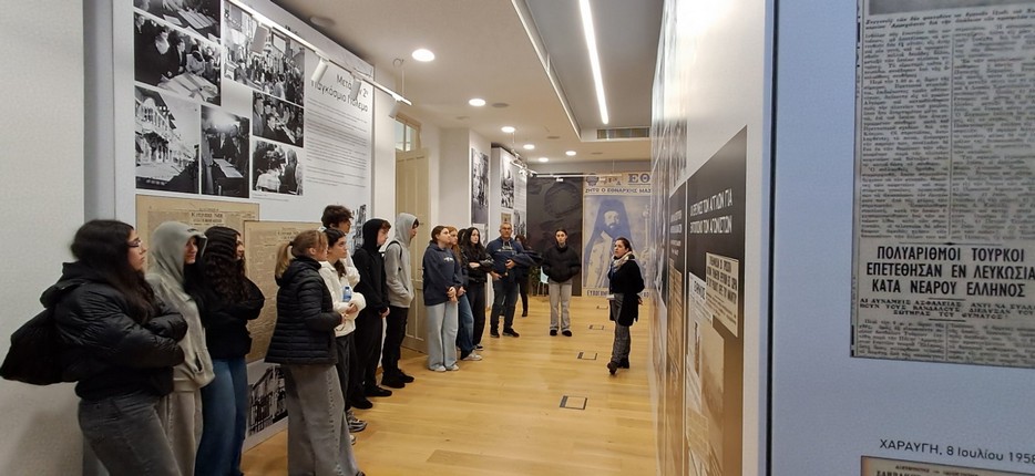 Την Τρίτη, 9 Δεκεμβρίου 2025, τα τμήματα Γ21 και Γ53 επισκέφθηκαν την Έκθεση Φωτογραφίας και Αρχείου Εφημερίδων του Γραφείου Τύπου και Πληροφοριών για τα 70 χρόνια από την έναρξη του Αγώνα της Ε.Ο.Κ.Α.. Οι μαθητές συμμετείχαν σε ξενάγηση και είχαν την ευκαιρία να δουν από κοντά πολύτιμο αυθεντικό υλικό για το ηρωικό έπος του Αγώνα του 1955-1959. Τους μαθητές συνόδευσαν ο ΒΔ Κωνσταντίνος Σάββα και η φιλόλογος Κική Ελευθερίου.
